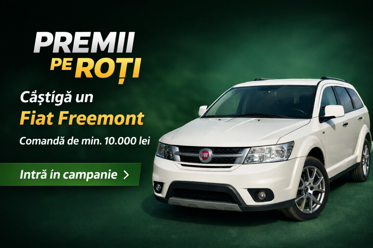 Plasează o comandă de minimum 10.000 lei și intră automat în tragerea la sorți pentru un Fiat Freemont.